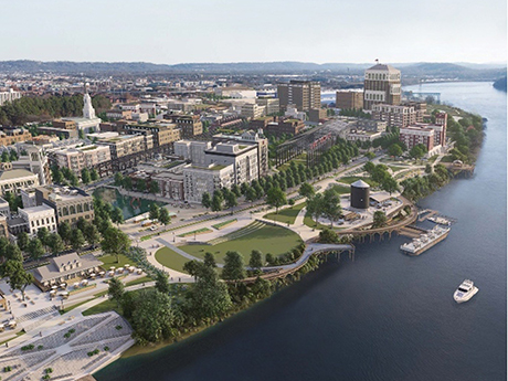 Plans for the project, which will feature more than 3,000 linear feet of frontage along a bend of the Tennessee River, include approximately 1,700 residential units; 1.1 million square feet of office space; 1.2 million square feet of dining, shops and service retailers; 600 hotel rooms; entertainment and cultural venues; and a 300-slip marina.