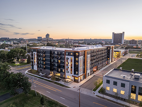 EDINA, MINN. — JLL Capital Markets has negotiated the sale of The Eddi at Pentagon Village, a luxury apartment community with 202 units in Edina. Completed in 2023, the property is positioned within the Pentagon Village development. Units average 753 square feet. According to JLL, The Eddi is the largest wood-frame modular apartment building in Minnesota, with 205 modules manufactured off site by Rise Modular and stacked atop a site-built concrete parking and amenity podium. Amenities include a fitness center, pool, clubroom, coworking spaces, dog spa and outdoor fire pits. Josh Talberg, Joseph Peris and Jack Graveline of JLL represented the sellers, Rise Modular and Soloman Real Estate Group. Oaks Properties was the buyer.