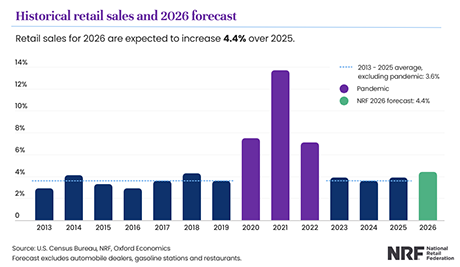 “While the geopolitical environment and ongoing trade policy challenges warrant close attention, we remain optimistic that the underlying fundamentals of the U.S. economy will support continued stability in the year ahead,” said Mark Mathews, NRF chief economist and executive director of research.