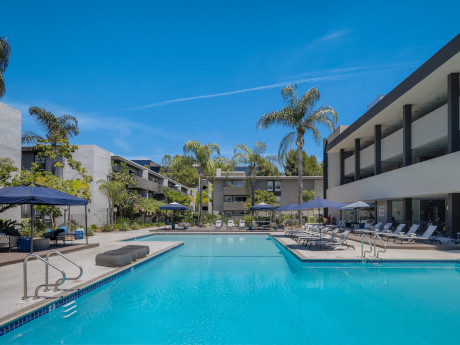 The five-building, gated community offers 390 apartments with breakfast bars and private patios or balconies. Renovated units have stainless steel appliances, quartz countertops, Shaker-style cabinets and updated plumbing and lighting fixtures. Community amenities include two levels of subterranean parking, a Junior Olympic-sized swimming pool, three pickleball courts and a modernized fitness center.