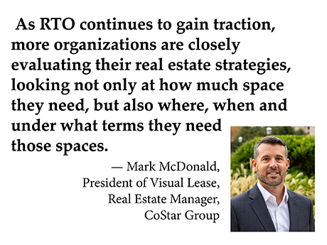According to resume.org, industry estimates suggest that around 75 percent of companies that were formerly remote have now implemented some version of RTO (return-to-office) since the pandemic. Many large, publicly traded companies spanning various industries, including tech (Amazon, Dell) and financial services (J.P. Morgan), are requiring employees to work onsite full time. As RTO continues to gain traction, more organizations are closely evaluating their real estate strategies, looking not only at how much space they need, but also where, when and under what terms they need those spaces.